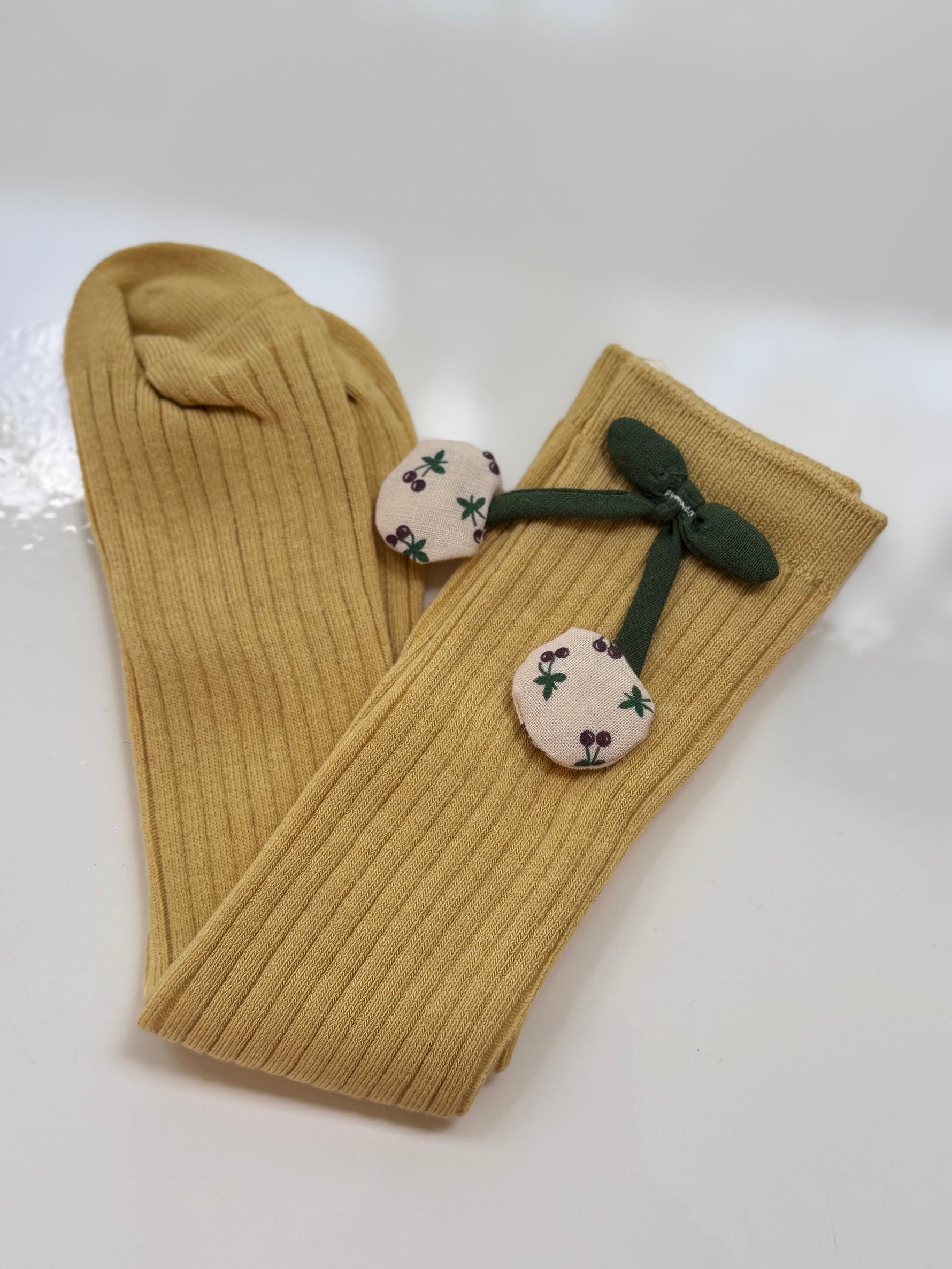 Dale un toque divertido y tierno al outfit de tu pequeña con nuestras calcetas con diseño en cereza lo mas chick de esta temporada, estan confeccionadas con una mezcla suave de algodon con poliester y spandex, que brinda comodidad, transpirabilidad y ajuste perfecto durante todo el dia. Lisas con relieve con cerezas alegre y encantador, ideal para combinar con vestidos, shorts. Ademas su elástico mantiene la calceta en su lugar sin apretar.