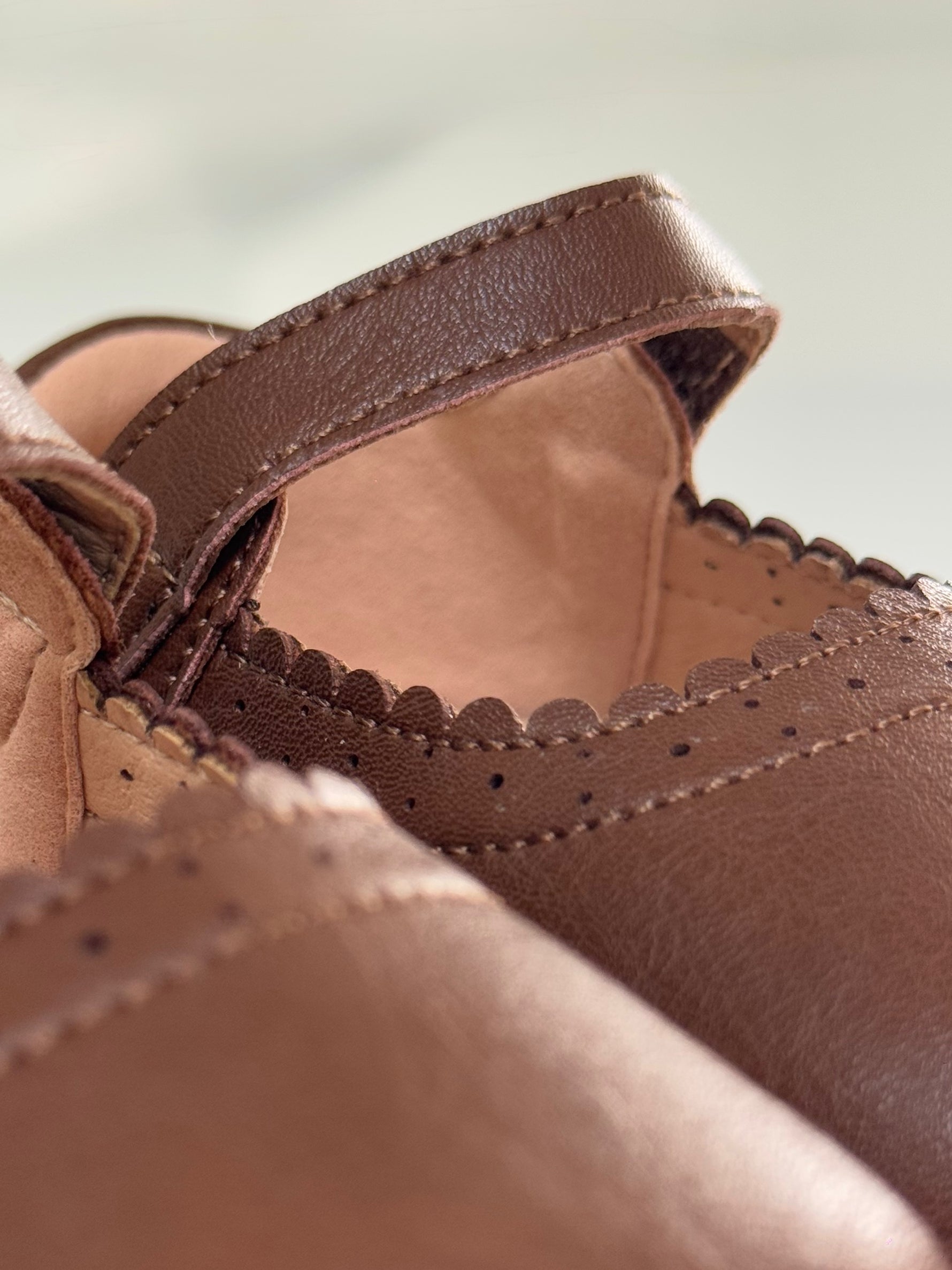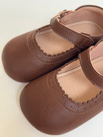 Estas zapatillas de piel en color café suaves, es una dulzura con su diseño clásico y elegante, está adornado alrededor con un corte elegante y sofisticado, con su cierre fácil con antiadherente fácil de abrochar lateral, el calzado ideal para vestidos o para calzado escolar o looks de ocasión.